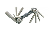 TOPEAK MINI 9 9 hardened steel tools fold into an extruded aluminium body. INCLUDES: 2, 2.5, 3, 4, 5, 6, 8mm Allen keys T25 Torx wrench Phillips screwdriver Neoprene bag 6.6x3.1x2cm 92g- £15.00