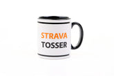 A colourful mug with a black handle and inner. The design around it is based on the STRAVA TOSSER fatboy design- £10.99