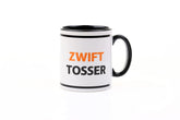 A colourful mug with a black handle and inner. The design around it is based on the ZWIFT TOSSER fatboy design- £10.99