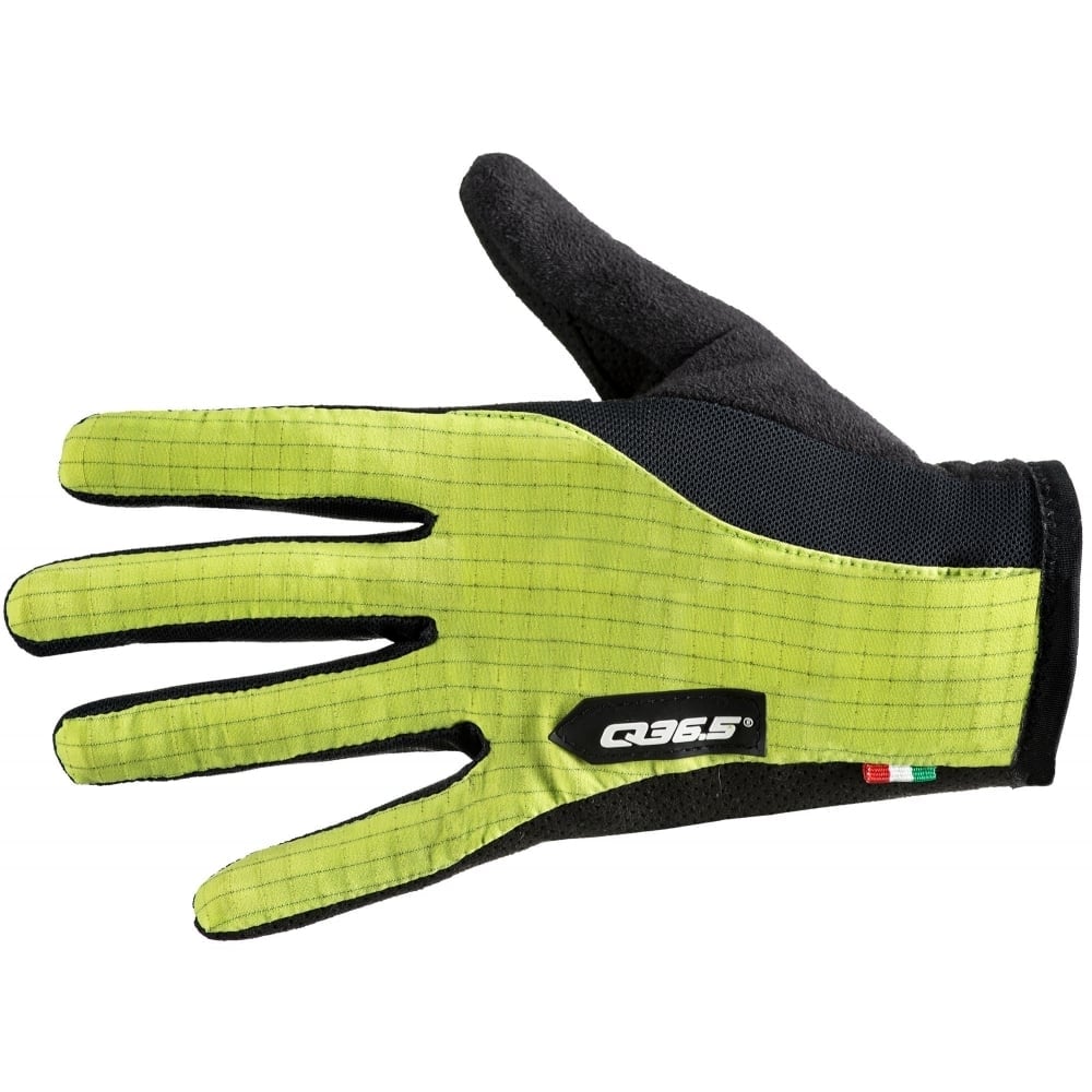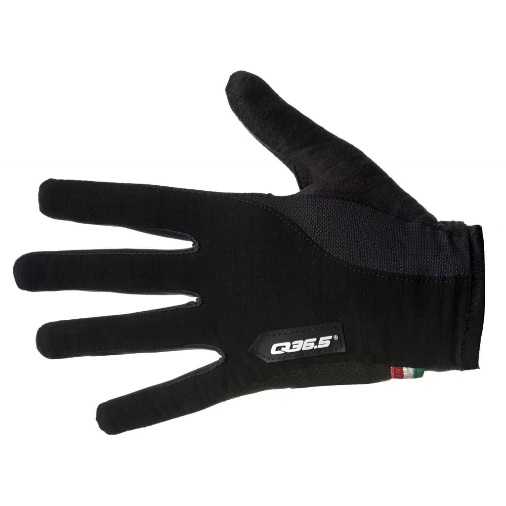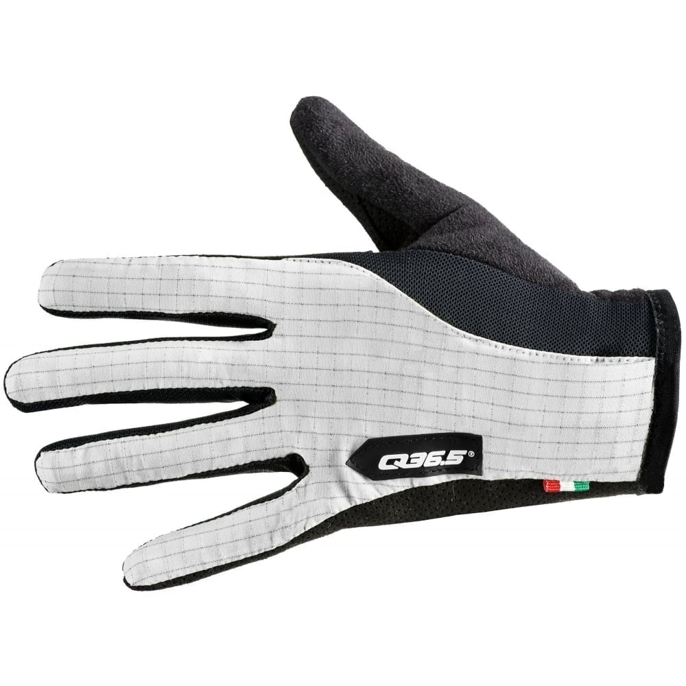 The new long-finger version of Q36.5 ’s stripped-down and essentialist modern Grand Tour summer glove. 19g per glove. Lightweight and highly breathable, like the entire collection. Minimal padding in the palm area for nerve protection. Perforated genuine leather mitts with Japanese synthetic suede details. Bacteria-static polyamide/carbon fibre uppers. Micro-fleece towel and mesh insert. The glove is cut with a ‘pre-shape ’ design, even when unworn it curls forward in the wrist and thumb-forefinger areas, mimicking the riding position of the hand, for minimal stress when worn.