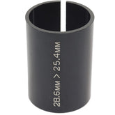 A split aluminium shim that fits over a 25.4 mm (1 inch) steerer tube changing the outer dimension to 28.6 mm (1-1/8 inch) Allows the use of a stem designed to fit 1-1/8 inch steerer tubes where greater choice is available Black anodised finish...- £7.99