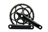 Compact Chainset \n \nalloy cranks and outer ring \n \nring size 46/34 5 bolt 110pcd \n \ncrank length 165mm \n \nFits tapered bottom bracket 110/113mm- £59.99