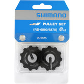 Ultegra rear derailleur replacement guide and tension pulley set Suitable for Ultegra RD6800/RD6870 Its recommended that you replace your derailleur pulley wheels periodically for the best shifting performance Set comprises of two pulley wheels and is a genuine Shimano replacement part- £20.99