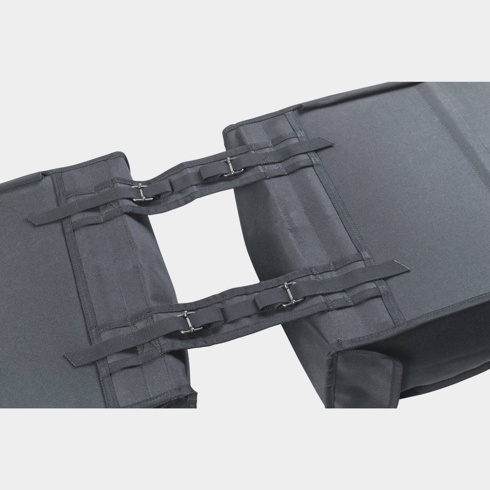 The Basil Mara Double Bike Bag is a modern choice of bicycle storage. This double bike bag easily attaches to your luggage carrier and will make a fine complement to all styles of bikes. Thanks to a generous interior with a capacity of 35 litres, you’ll never be short on somewhere to stow away those all-important essentials. Use it to load up on groceries, work essentials, or kit and gear for the gym. Suitable for use with men and women’s bikes, this bag is crafted from water-repellent polyester. This allows you complete protection when you’re out and about and chance upon bad weather. What’s more, reflective details give you added visibility in the dark, providing you with road safety peace of mind. Special recesses provide bespoke installation options, while secure snap-fasten closure means your stowed items are kept in place during bumpy rides.