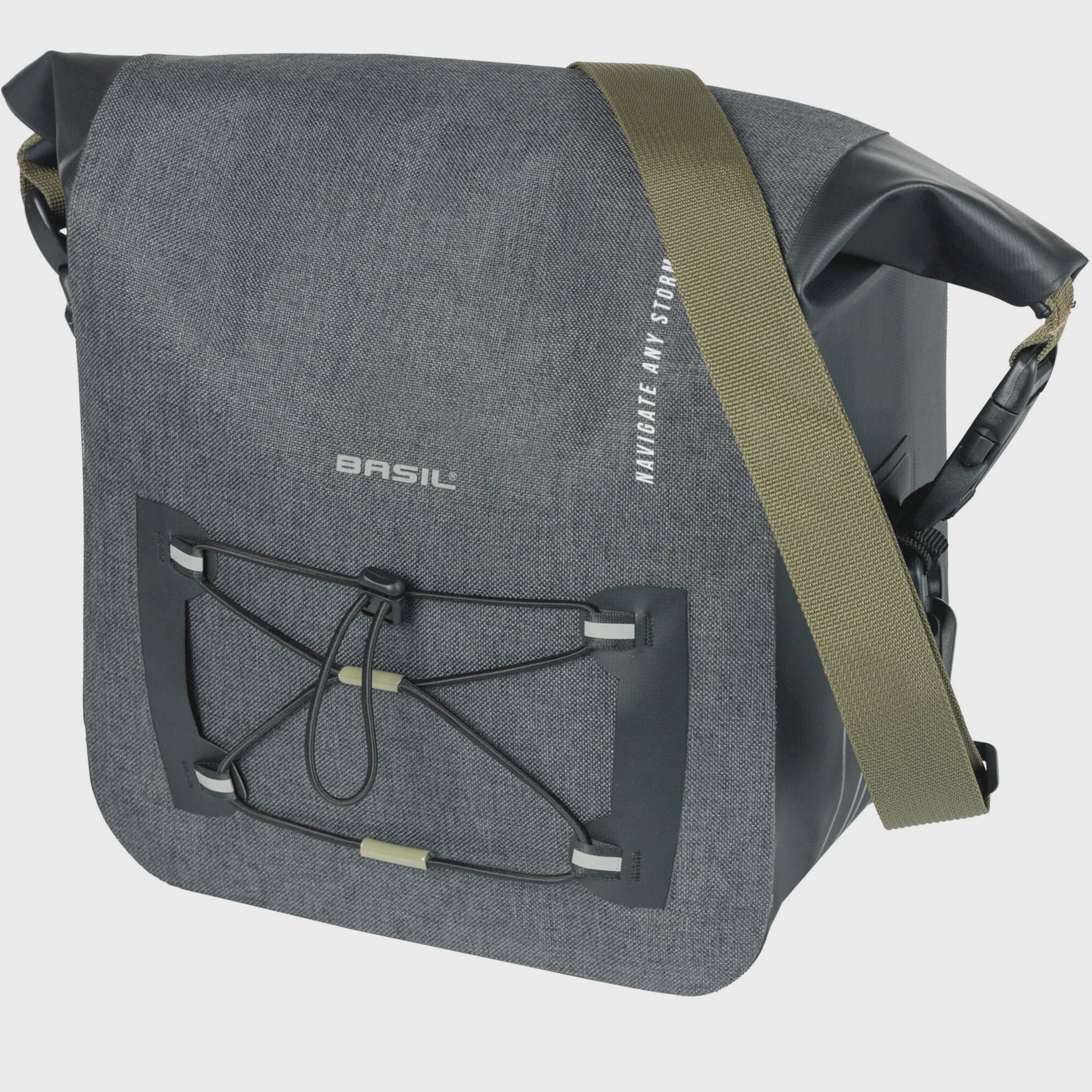 The handlebar bag is made of waterproof polyester and tarpaulin, so it will last for years to come on your bike rides. The bag has a sporty look and fits perfectly with the other bags in the Navigator Storm collection. Everything has been thought of to ensure your belongings are carried as practically as possible. For example, an adjustable elastic cord, zipper, and mesh pocket are on the inside of the bag, and the handlebar bag can be easily closed with the roll-top closure. You'll never lose your keys again, thanks to the snap-hook. Out for a ride in the dark? No problem! The reflective Basil logos on 3 sides make you better visible.