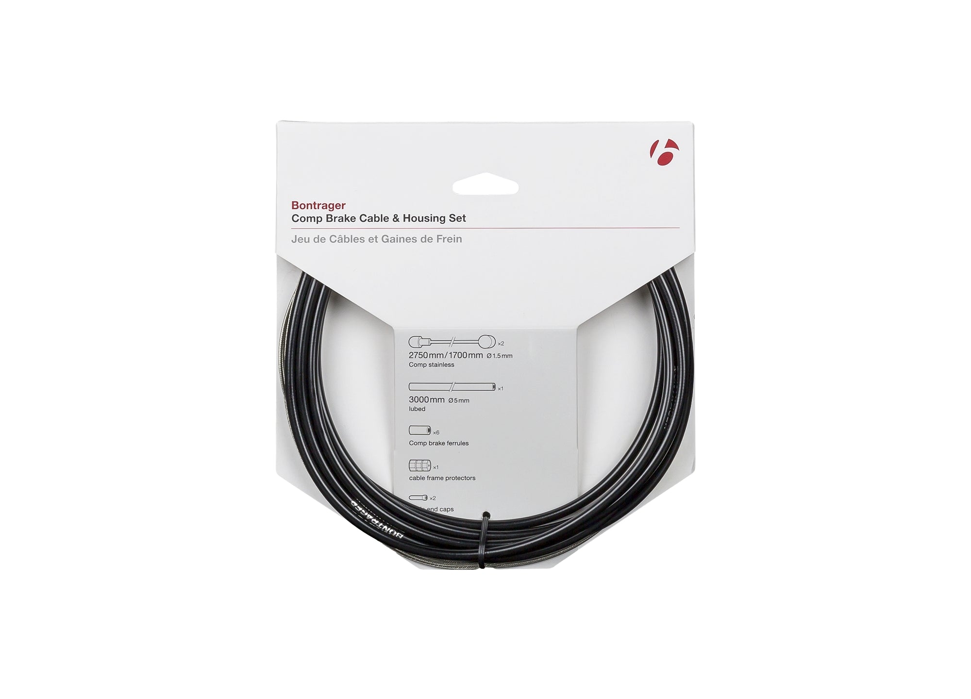 This convenient and valuable kit is the key to restoring your brake's performance;Compatible with nearly all braking systems;Stainless steel cables are 2750mm and 1700mm long, for front and rear brakes;Compressionless housing comes pre-lubed is 3000 mm long;Kit includes Comp brake ferrules, cable frame protectors, and cable end caps;Included stainless steel cables are rust-proof and come pre-stretched;
