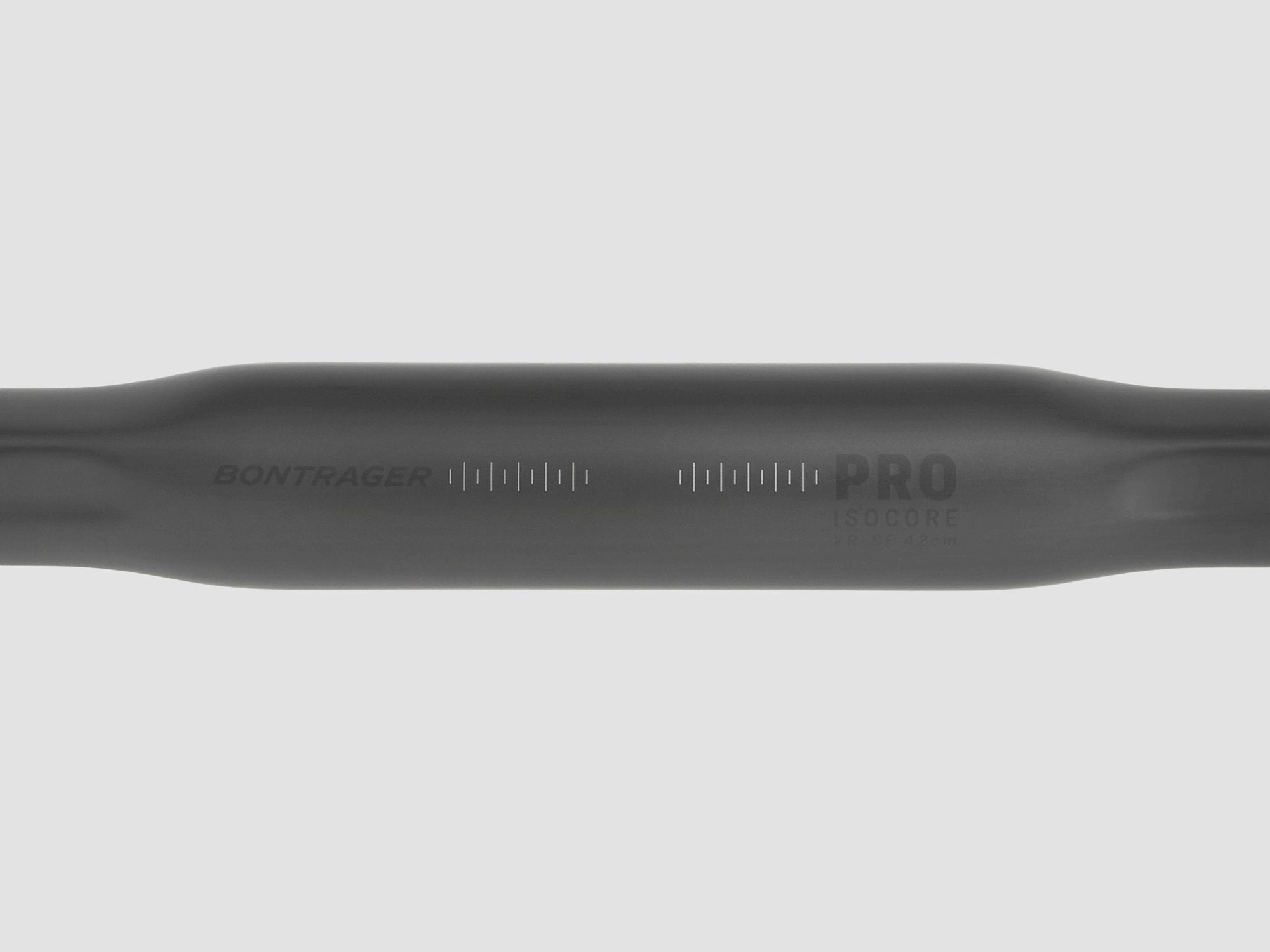 A carbon road handlebar with IsoCore that reduces road vibration by 20% and features a shallow-flared drop and shorter-reach design.