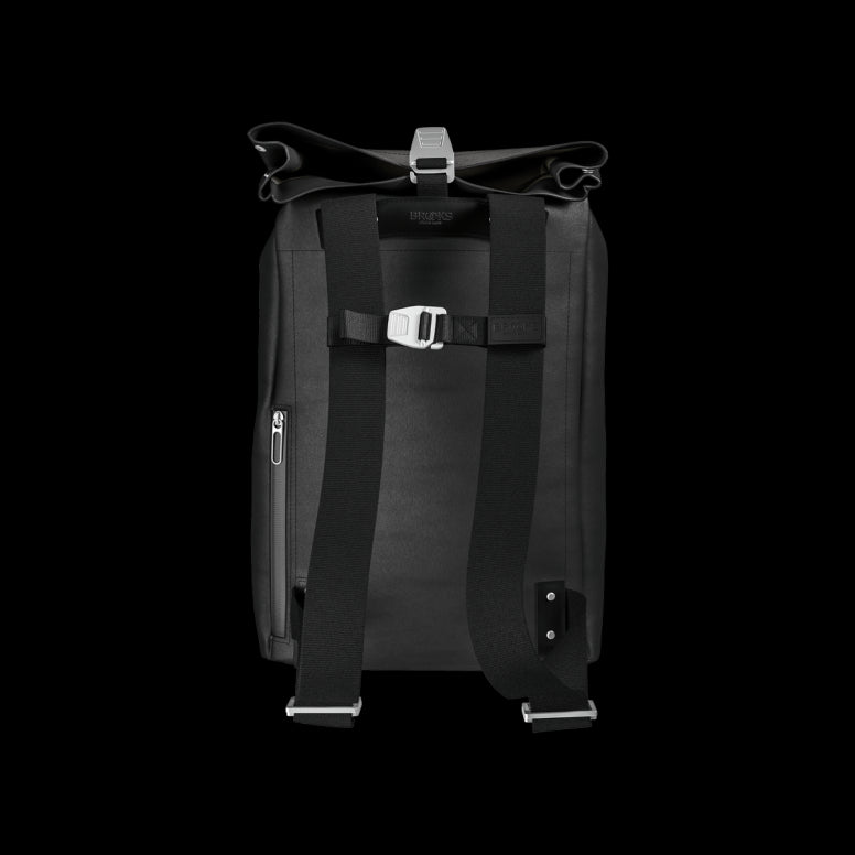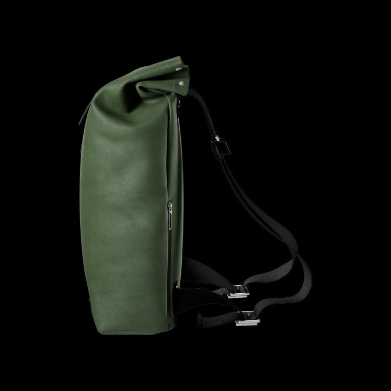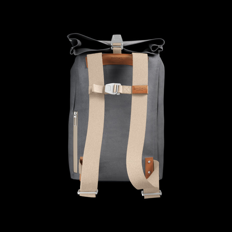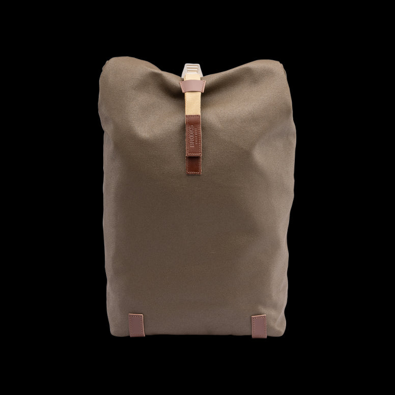 The Pickwick, a versatile canvas roll-top backpack. Made from water-resistant canvas and genuine Brooks leather trim, the Pickwick is the perfect bag for urban cycling.