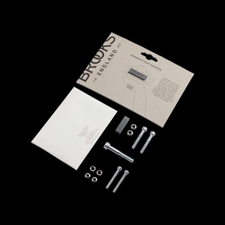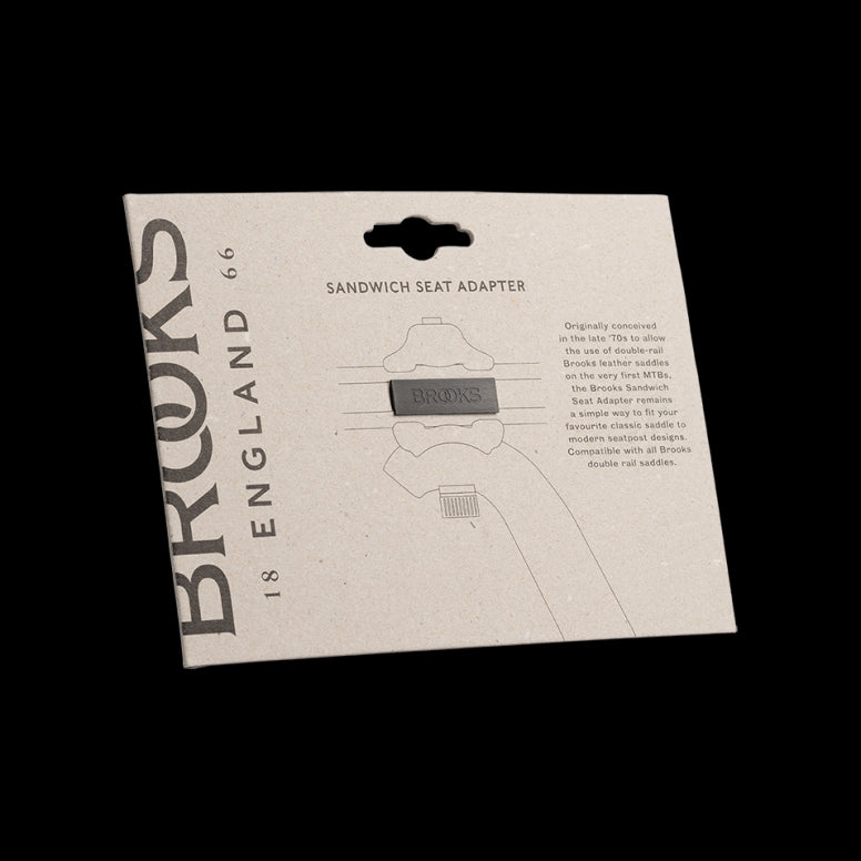 The sandwich seat adapter enables you to fit a Brooks saddle with a double rail to most modern micro-adjust seat posts intended to clamp a single saddle rail. Intended for use with the following Brooks saddles: B72, B190, B33, B135, B66, B66 Short, B18.