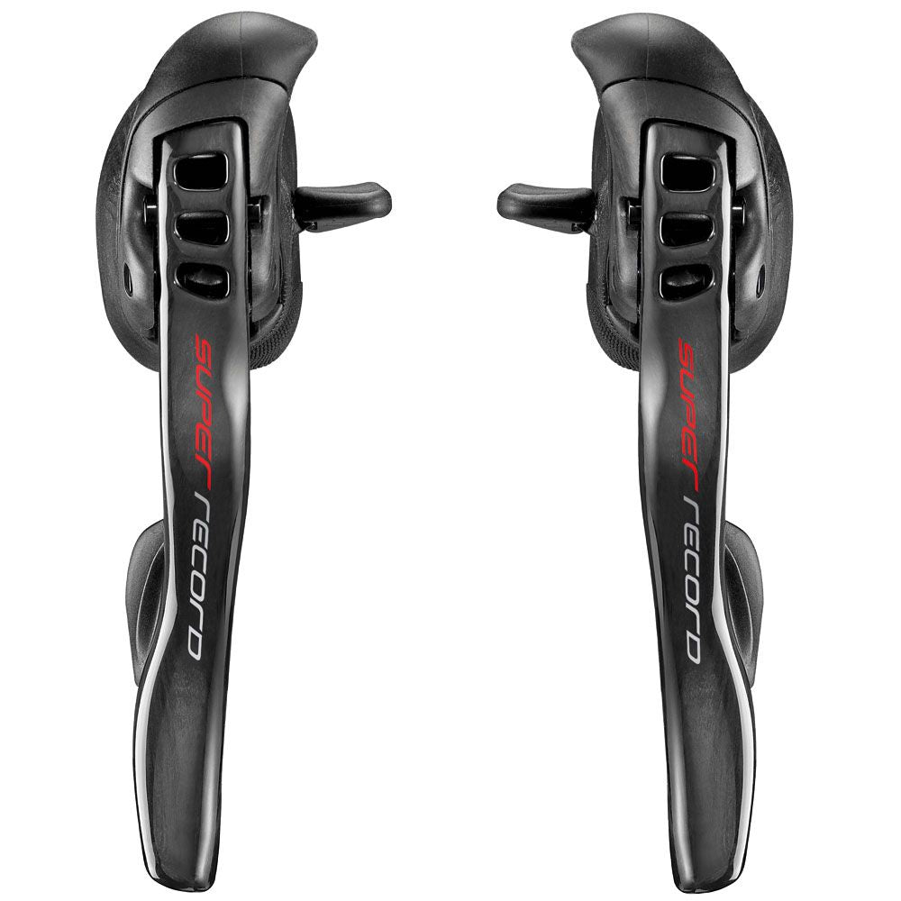 The Vari-Cushion technology offers an ergonomic, comfortable and safe support and grip, ideal for riders who are in the saddle for many hours. The innards of the controls boast a concentration of technologies and experience, starting with the "one lever-one action" feature that assigns one function to each lever in order to prevent shifting errors when tired or distracted. This is followed by the option for multiple shifting that enables upshifting up to 3 sprockets at a time and downshifting up to 5 through the Ultra-Shift mechanism. The new Super Record 12x2 Speed Rim Brake levers introduce a double curvature to improve grip, the Super Records blades are lightened by three slots.