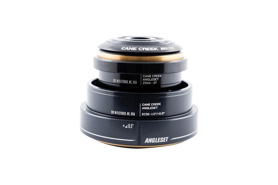 The all-new AngleSet threadless headset makes it possible to change the game. With Angleset the head angle of a mountain bike can be transformed with ease, as the lowstack-height AngleSet offers up to six offset angle adjustment. With steeper or slacker adjustments from 0.5 to 1.5 degrees, dialing in the perfect geometry to attack the trail is a breeze. The patent-pending design of AngleSet is head-tube length independent and fits most popular head-tube standards. A self-aligning feature between the bearings and the steerer-tube ensures a perfect fit and makes fork installation a snap.