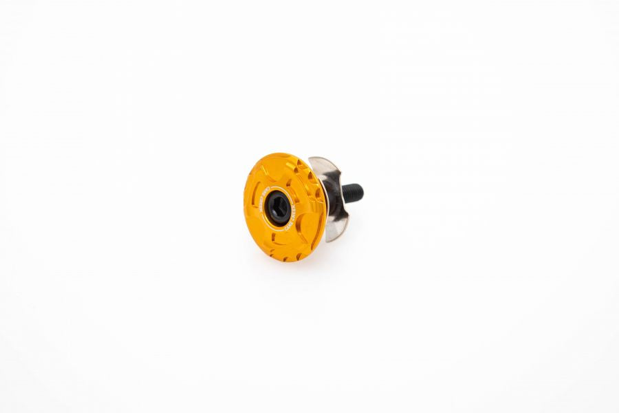 Cane Creek €™s new premium headset preload assembly is all about the details. With a beautifully machined top cap, 7075 series aluminum preload bolt, and a steel/aluminum hybrid star fangled nut, the assembly is thoughtfully saving weight while gaining looks. At 16 grams, it is 50% lighter than a standard preload assembly.