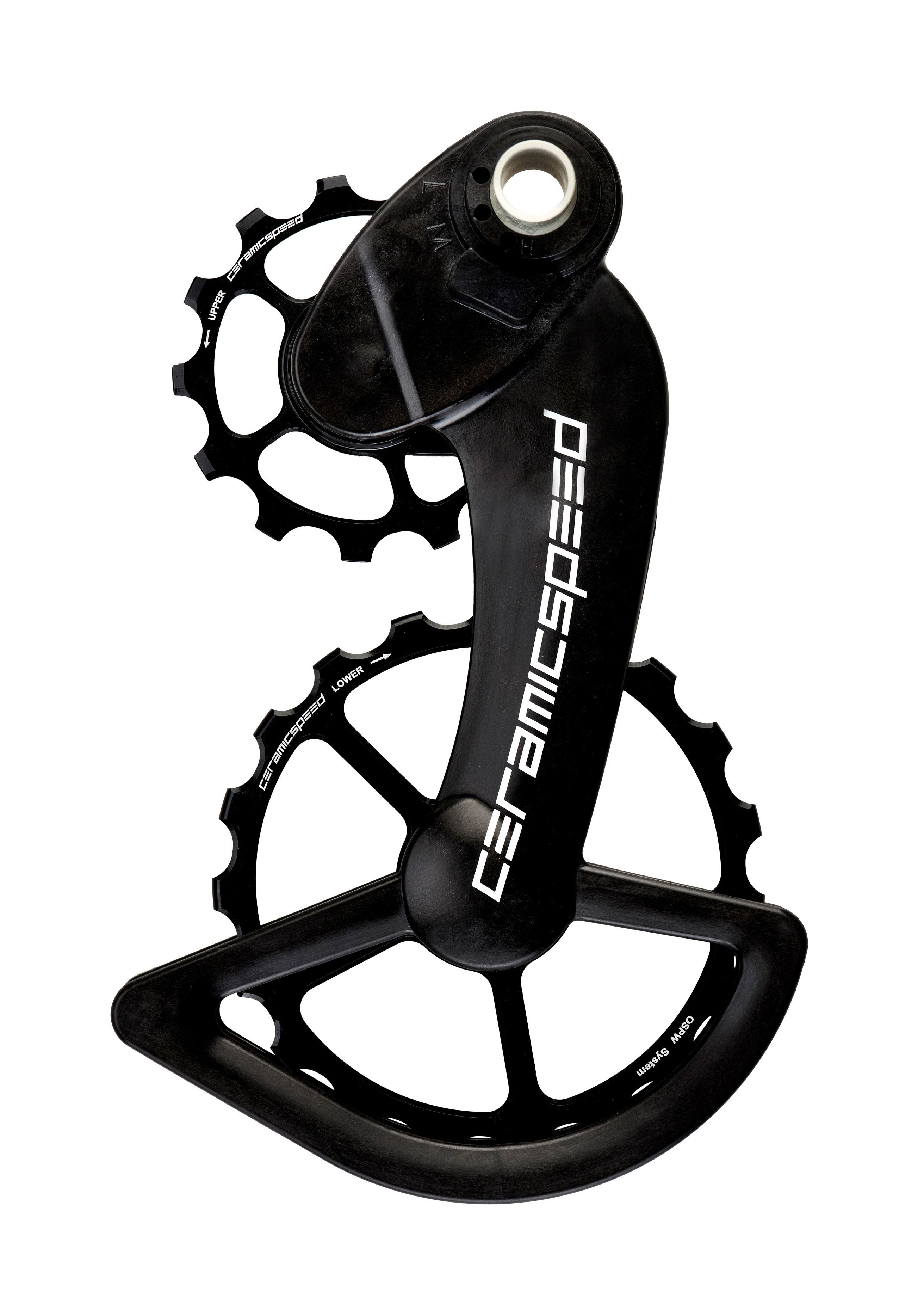 The 13-tooth/19-tooth OSPW for Campagnolo provides a 40% lower friction over a standard 11-tooth Campagnolo pulley wheel and fits up to a 32-tooth cassette.