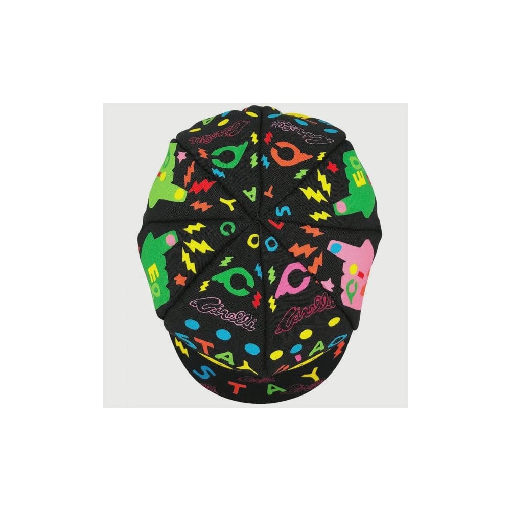 Cap collaboration by Louie Cordero for the Cinelli Art Program. Louie Cordero was born in 1978 in Manila, Philippines and is currently based in Malabon. He €™s an award-winning painter, sculptor and creator of Nardong Tae, a self-published underground comic series. The cycling cap is a perfect accessory on or off the bike. An extra layer of protection under your helmet on cooler days, it also keeps the sweat out of your eyes on intense rides.