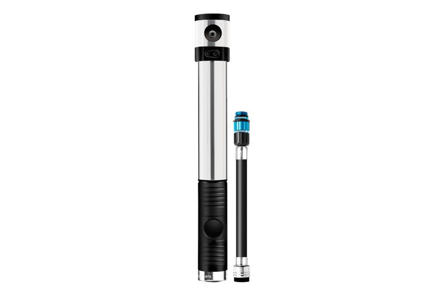Klic pumps feature a hidden flexible hose which is stored within the pump. The hidden hose uses a unique magnetic interface to attach to pump. The highly polished pump body has an integrated twisting collar to keep the pump free of dirt and debris. An ergonomic t-handle helps make inflating tyres effortless.