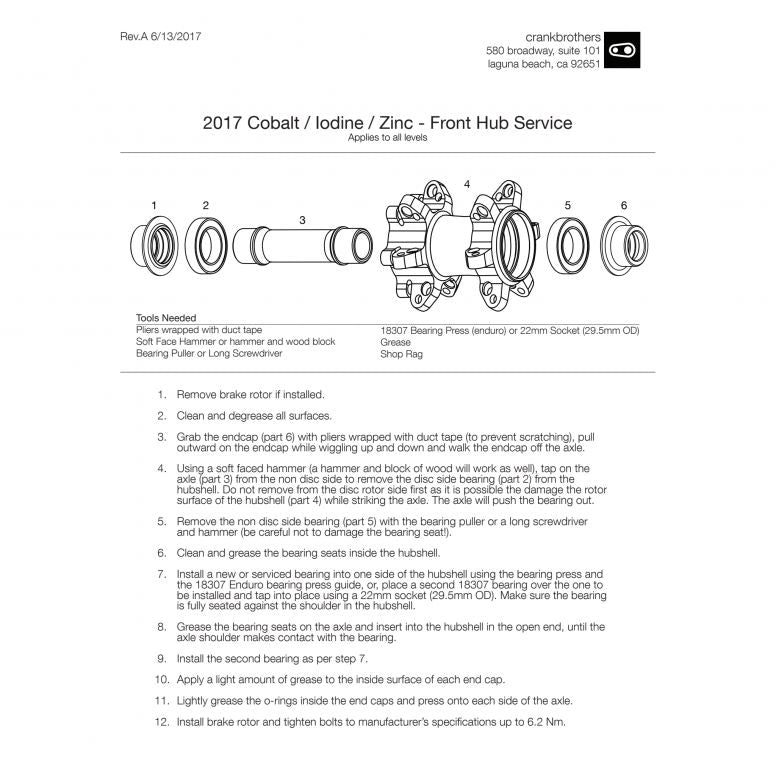 Crankbrothers Iodine Front Hub Non Boost 20Mm Black Wheel Spares