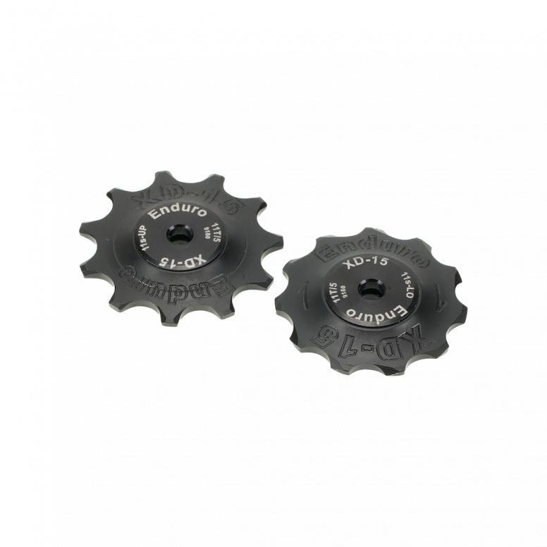 Enduro Derailleur Pulleys are available in a number of configurations and performance levels, starting with Ceramic-Hybrid, Black-Oxide treated Zero Ceramic as a step up, and XD-15 Ceramic-Hybrid at the top of the line. All are proudly precision manufactured in the USA."