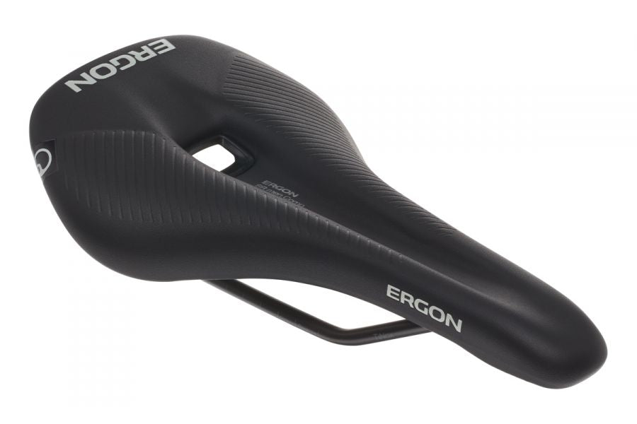 The new Ergon road saddle for men. Due to their specific pelvic anatomy men are sitting more upright on the saddle. This creates a higher pressure in the highly sensitive perineal area, which often leads to any of the varying forms of discomfort. This is where the relief concept of the SR Men saddle comes into play. Through the falling relief channel with cut-out, the resulting pressure is evenly distributed onto the bone structures (sit bone and parts of the pubic blades). The Y-shape helps keep the freedom of movement high even when riding in the low position typical for road biking.
