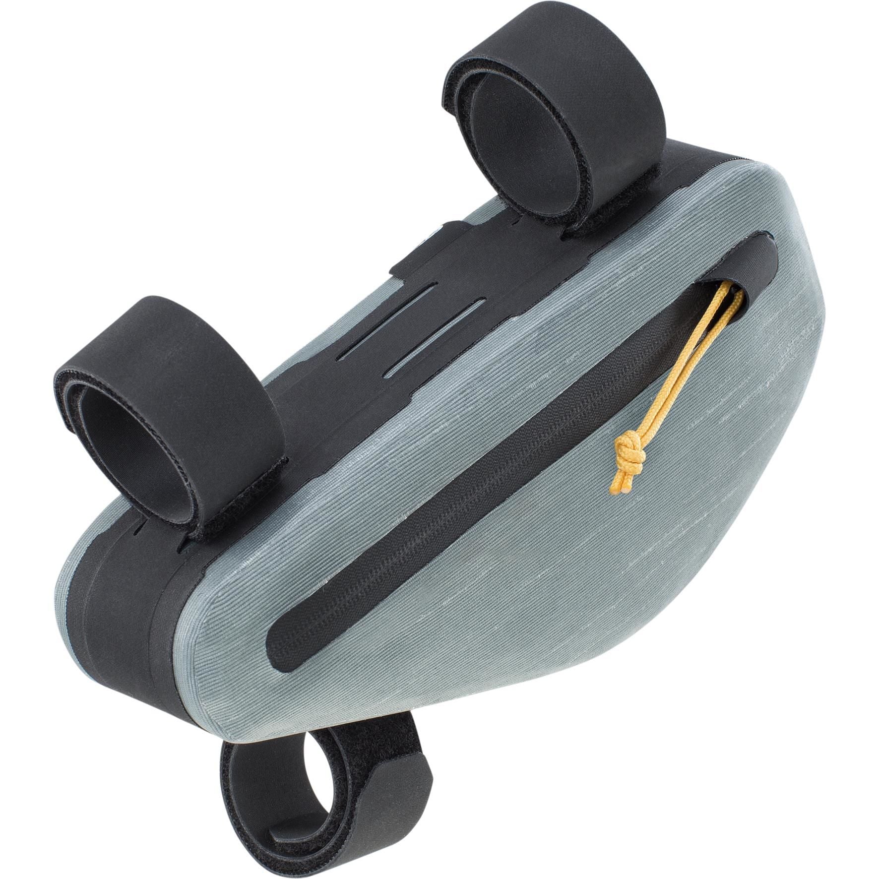With the MULTI FRAME PACK WP S the name says it all, really. The smartly cut, waterproof frame bag is super easy to mount to all kinds of frame designs. No matter if you prefer gravel, mountain or road biking, this compact bag will let you carry tools, inner tubes, etc. within easy reach while perfectly protected from dirt and water. The velcro fastening straps can be cut to size and the multiple mounting options enable you to secure it virtually anywhere on your frame either vertically or horizontally; transparent frame-protection strips are included. And for all those who prefer bringing a few extra energy bars or other gadgets, we offer the larger MULTI FRAME PACK WP M.