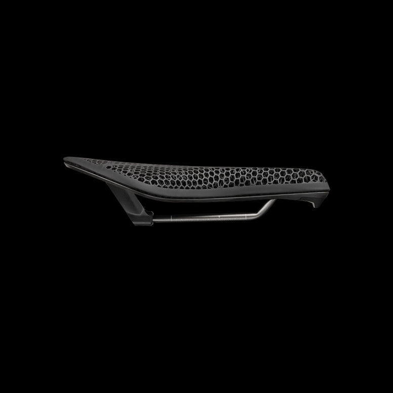 Thanks to its 3D-printed padding with engineered zonal cushioning, the Aeris short-distance Adaptive saddle ensures maximum stability and support for time trialists and triathletes requiring an optimal platform from which to produce power while in forward, aerodynamic riding positions. Equipped with R3 7x7mm kium rails.