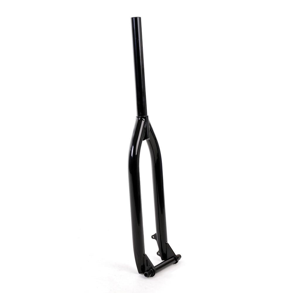 Premium 4130 Cr-mo Deep drop steerer crown allows shallow bend radius legs and large weld area for increased strength. Fluted and butted 31.8mm legs are both light and strong. The internally and externally machined steerer offers optimised strength and weight, without the stress rising areas that changes in diameter over short distances can cause.
