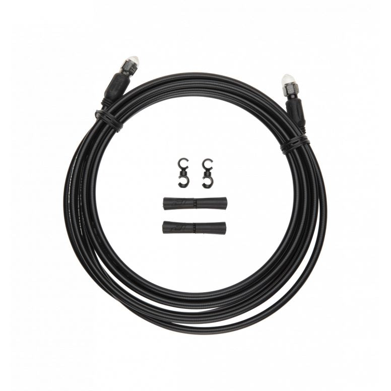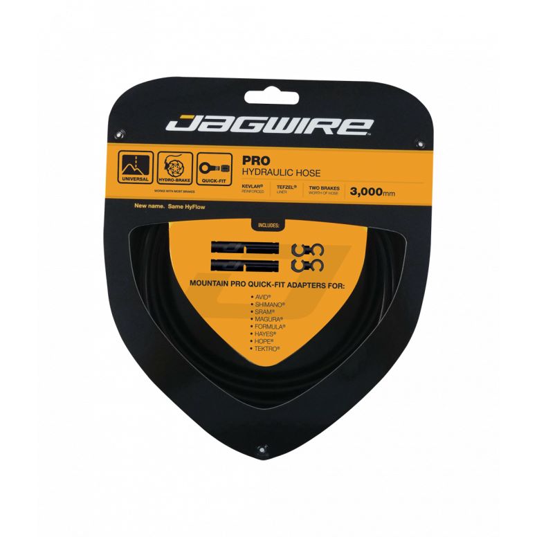 With more disc brake platforms on the market than ever before, fitting hydraulic hoses can be compLEX and frustrating. That €š „ ´s why we developed the Quick-FitTM adapter system, a foolproof approach utilizing proven caliper-adapter technology from the motorcycle world. Pro hydraulic hoses make it safe and easy to dial in a perfect fit. A Kevlar weave surrounds the Tefzel inner liner, preventing any bulges due to heat building up or extreme braking pressure. Each hose comes with 2 pre-installed caliper-side universal couplers. Cut the hose to the correct length, attach the appropriate Quick-FitTM Adapter for the brake system (sold separately), and it €š „ ´s ready to install. A Kevlar weave surrounding the liner prevents hose expansion due to heat buildup or extreme pressure. Each hose has 2 caliper-side universal couplers that connect to Jagwire Quick-FitTM Adapters (sold separately). Pro Hydraulic Hose kits are available in 12 colors and finishes. Black kits contain gloss black housing with silver logos; Stealth Black kits have matte black housing featuring black logos.