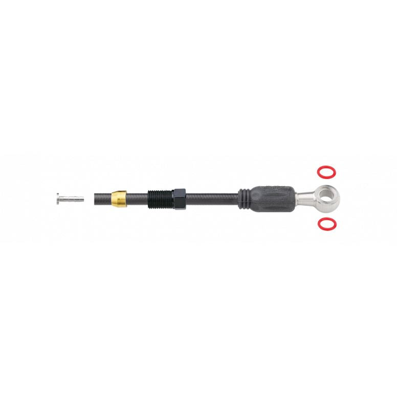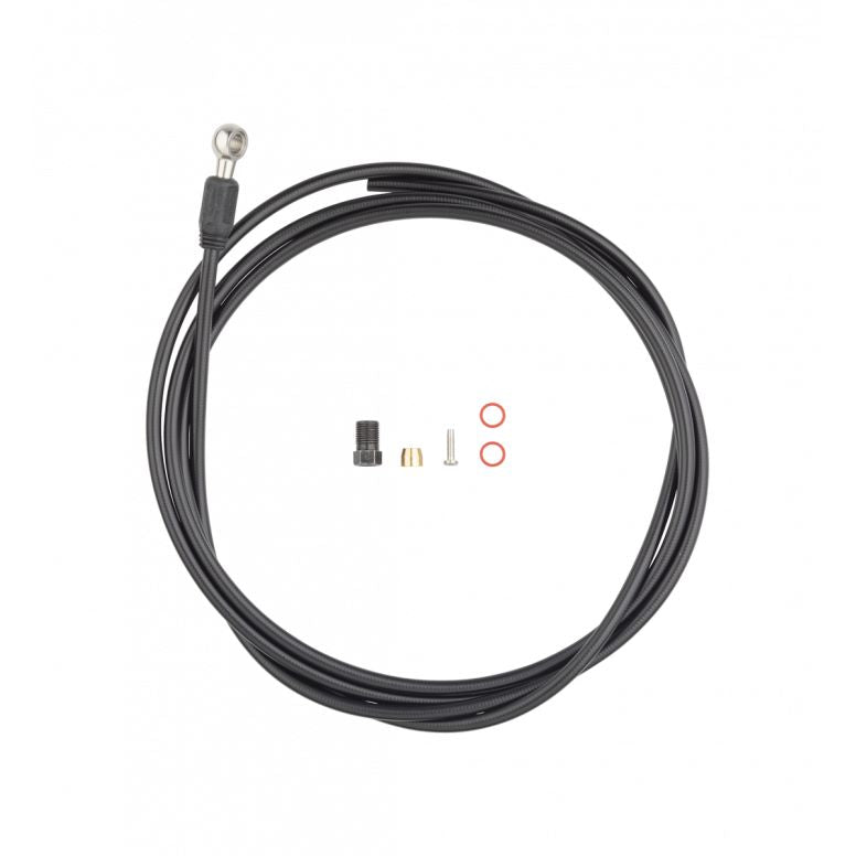 High quality hydraulic control lines don't have to come with a premium price. The new Jagwire Sport Hydraulic Hose kits provide dependable performance and offer exceptional value. An excellent alternative to OEM hydraulic hose, they feature a durable, fLEXible reinforced layer surrounding a low-friction inner tubing to deliver light brake lever action and trustworthy braking power. Offered as single hose kits for individual brakes or in bulk boxes for workshop use, Sport Hydraulic Hose is available for most popular road and mountain hydraulic disc brake systems. High performance hydraulic hose provides effective braking power and control. Available separately for DOT or mineral oil hydraulic disc brake systems. Kits include hose and fittings for a single brake; no additional fittings are required. Bulk boxes include 10x 2000mm hoses with caliper-side fittings pre-installed or 30 meters of uncut hose (mineral oil only).
