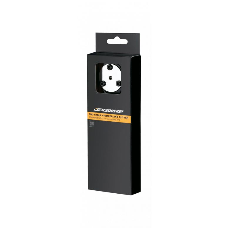 Jagwire €š „ ´s Pro Cable Crimper and Cutter makes it easy to trim a cable and then perfectly crimp a cable tip every time. Features hardened SK5 steel cutting blades formed specifically for inner cables. The unique integrated crimper uses three blades that contract as the handle is closed, giving a professional and secure 3-sided crimp. The ergonomic handles ensure comfort for all-day use. Cutout in arm can be used to remove previously-installed cable tip Integrated closure hook makes storage easy.