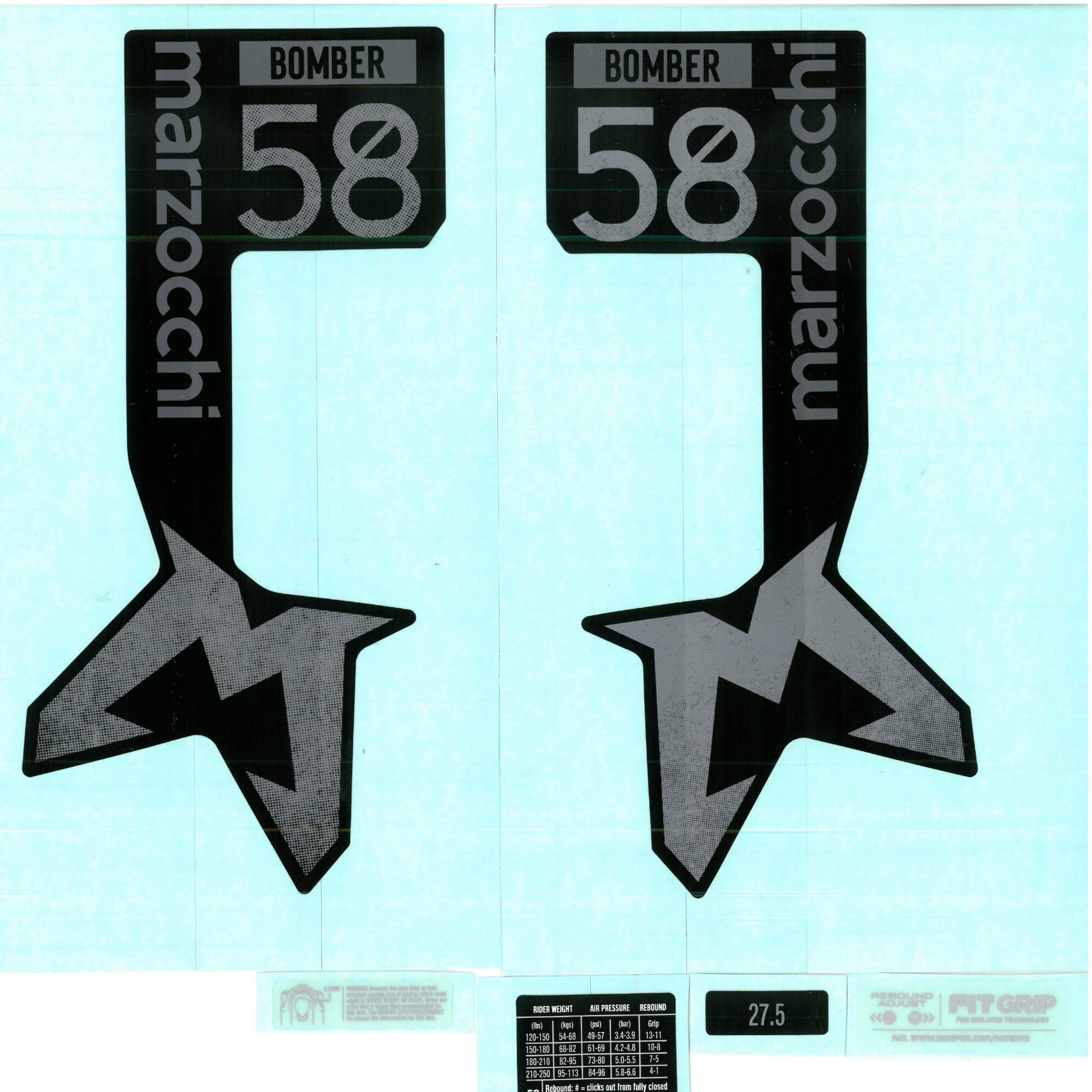 Marzocchi Fork Bomber 58 Decal Kit: Neutral Gloss Black Logo Shiny Black 2024 Spares & Accesories