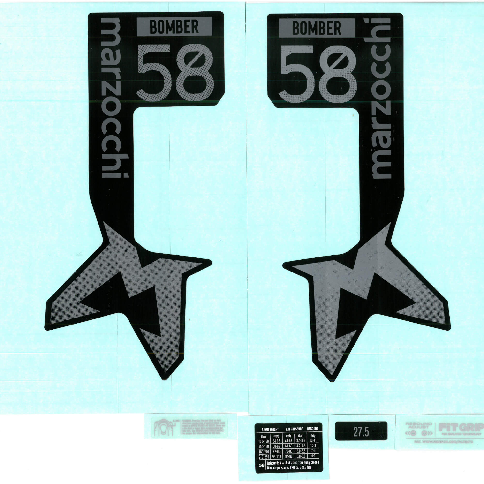 Marzocchi Fork Bomber 58 Decal Kit: Neutral Matte Black Logo Matte Black 2024 Spares & Accesories