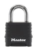 The Master Lock Excell® No. M178EURD Solid Body Padlock features a 57mm wide zinc body for strength and reliability. The 9mm diameter octagonal shackle is 28mm long and made of Tough-Cut boron-carbide, 50% harder than hardened steel, offering maximum resistance to cutting and sawing. The roller pin cylinder provides maximum pick and pry resistance. The hinged dial cover and shackle seal offers superior weather protection, and reinforced body bumper protects against scratches. The lock includes Set-Your-Own combination convenience, without the need for a reset tool. The Limited Lifetime Warranty provides peace of mind from a brand you can trust.