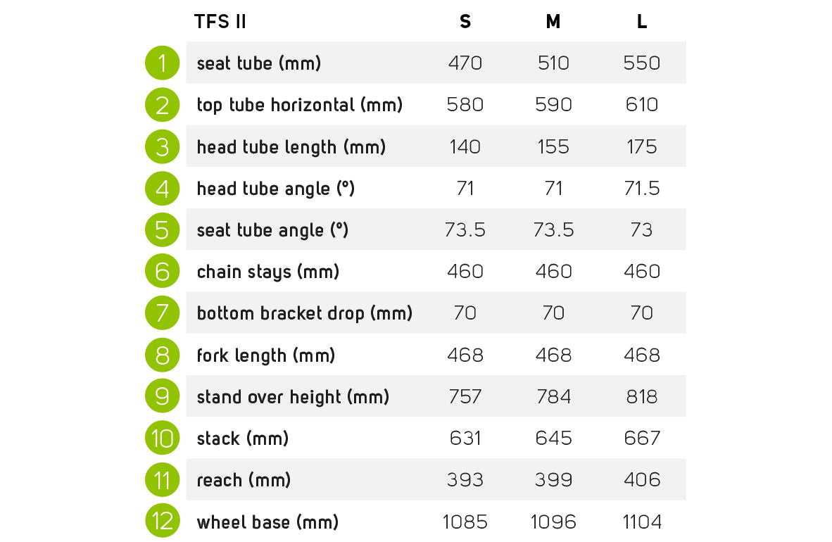 | Frameset | TFS II - 6061 double butted technoformed aluminium tubing with internal cable routing. Tapered head tube, inboard disc mount, BSA BB standard, 135 x 9mm QR axle standard. Mounts for rack, mudguards and kickstand. Max. tyre size 700 x 50c |
