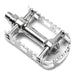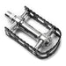 The BM-7 is a 2012 reissue of one of MKS's most popular BMX designs from 1979’s. The BM-7 features an alloy body and an alloy cage built around our hand-adjusted cup and cone bearing system. The one-piece wrap around cage features an aggressive tooth profile (but not as aggressive as the BM-10 that came after it) with a slight concave design to help keep your foot centered. While the original BM-7 has a black plastic dust cap, our updated version has an alloy cap.