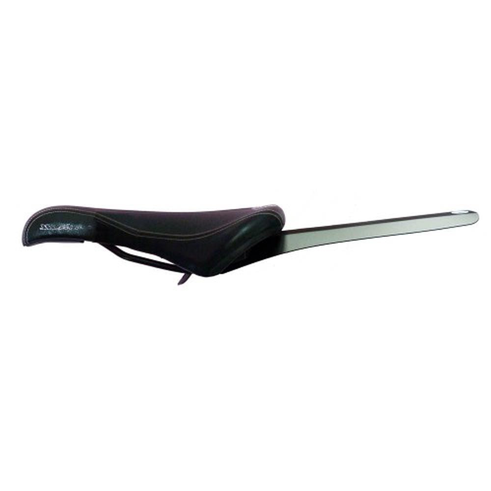 -Compatible with all standard double steel rail saddles, so long as they don't have any daft bits hanging off the rear. See image.