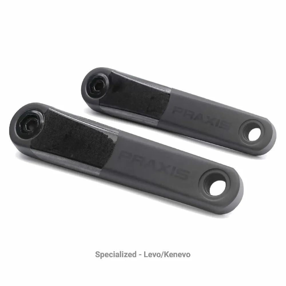 Specialized e-Crank Working closely with Specialized, Praxis have created e-crank arms for many of their e-bikes. Simply pull off the stock aluminium crank arms and bolt on these carbon cranks for a lighter, higher performance setup on your Specialized e-bike. eCranks for the Levo, Kenevo, Vado, Como eBikes with the steel ISIS spindle/motor (not SL family).