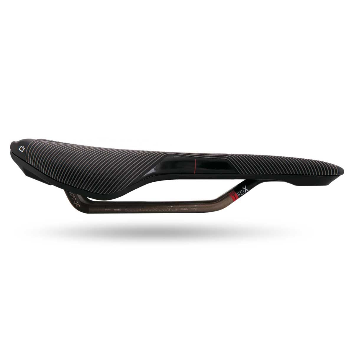 This ergonomic saddle features a flat shape and short, compact dimensions of 245x145mm; a wider nose to increase rider stability and bike control; and rounded rear shapes for easier entry and exit from the saddle.