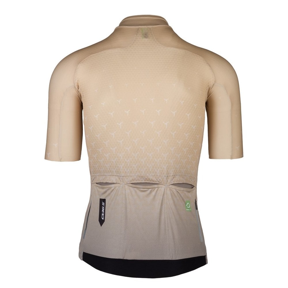 The sleeves are made with a lightly ribbed fabric while the front panel is a micro perforated fabric and there is a honeycomb mesh on the back. All together, this innovative combination makes the Jersey R2 very light (110gr) and very breathable.