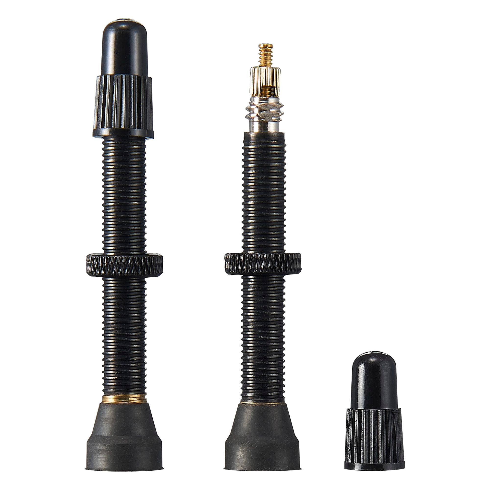 The Ritchey Tubeless Valve is a critical component for tubeless bicycle wheel systems by creating an airtight seal around the valve hole on the rim. Sold as a double valve (black) For use with tubeless and tubeless-ready rims and tires only 45 mm, 55 mm