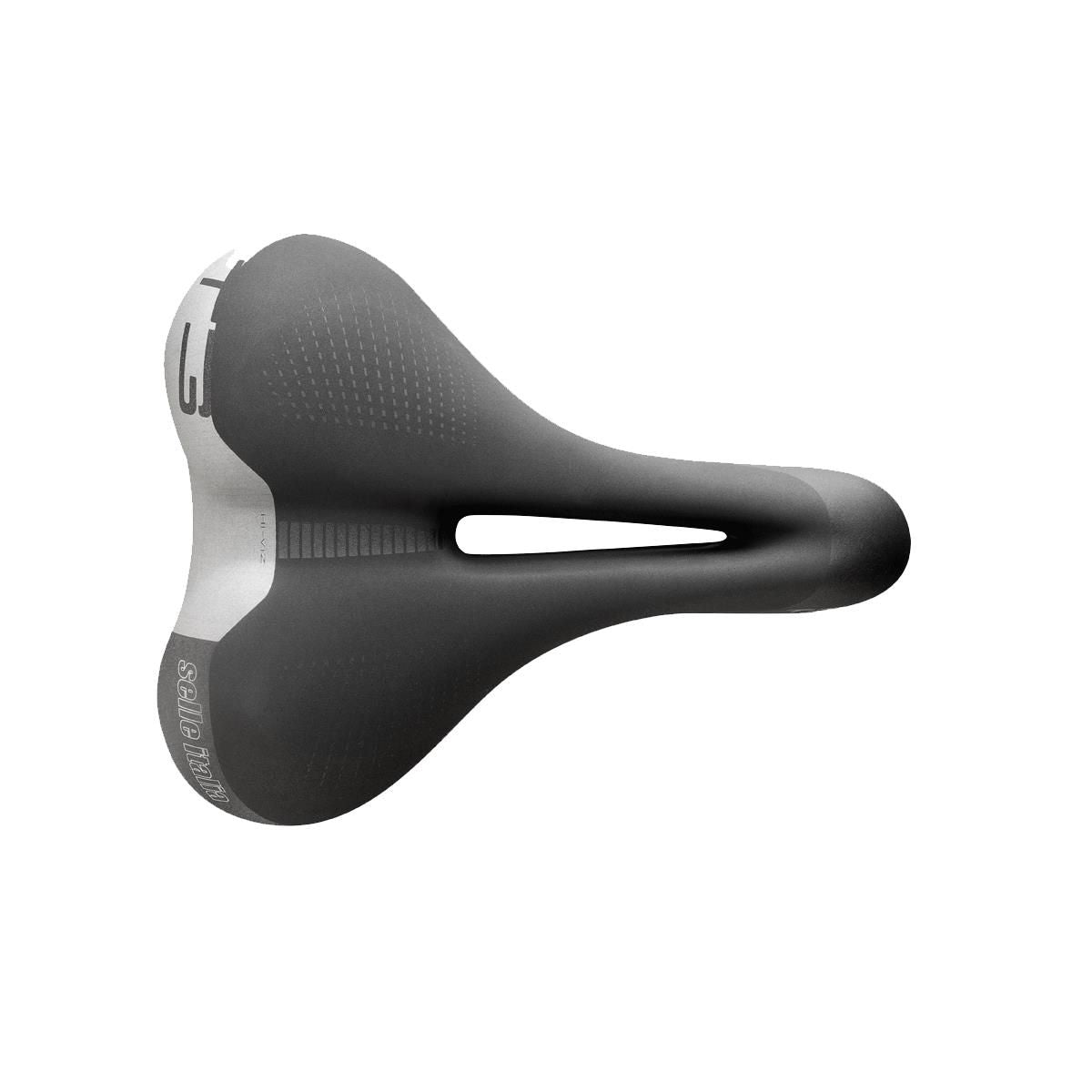 The T 2 Flow is all about comfort. Its wide and ergonomic seat allows you to ride comfortably as your ischial bones are supported throughout. The layer of gel inside the padding, together with the Flow central cut-out that relieves pressure from the perineal area, helps to improve comfort in every situation. The Hi-Viz inserts on the back of the seat ensure visibility and safety even at night.