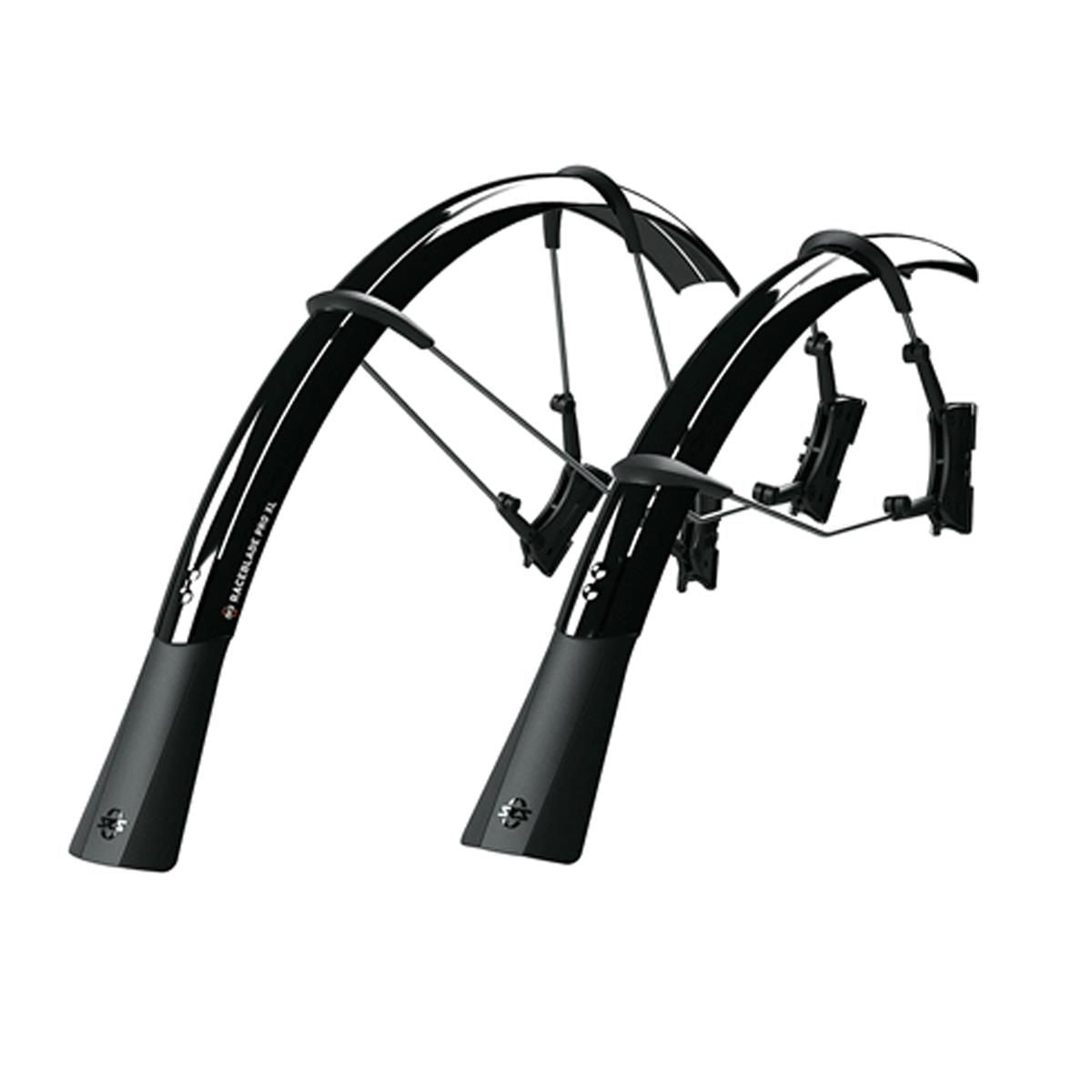 The ultimate clip-on mudguard set for road bikes. Raceblade set for max. tyre width up to 25mm, Raceblade XL (Please see seperately) up to 32mm. The smart, double hinged quick release fitting system also fits aero forks and is compatible with disc brakes. Mudguards can be perfectly adapted to the radius of the wheel by adjusting the length of the stays. Superlight extra long mud flaps give additional spray protection. Includes adhesive protection kit to avoid damaging the paintwork.