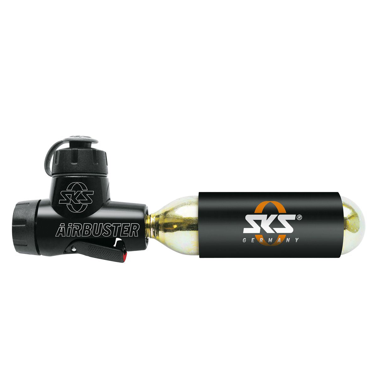 The new AIRBUSTER is the ultimate CO2 solution. The CO2 inflator features an aluminium body with an integrated pressure control regulator to help the user release just the right amount of air. Dust protection cap keeps internals clean. Compatible with 16g and 24g threaded CO2 cartridges, SKS cartridges feature insulation protection. The AIRBUSTER is supplied with a 16g CO2 cartridge and 2-point pump holder. Supplied with bottle cage mounted frame bracket.