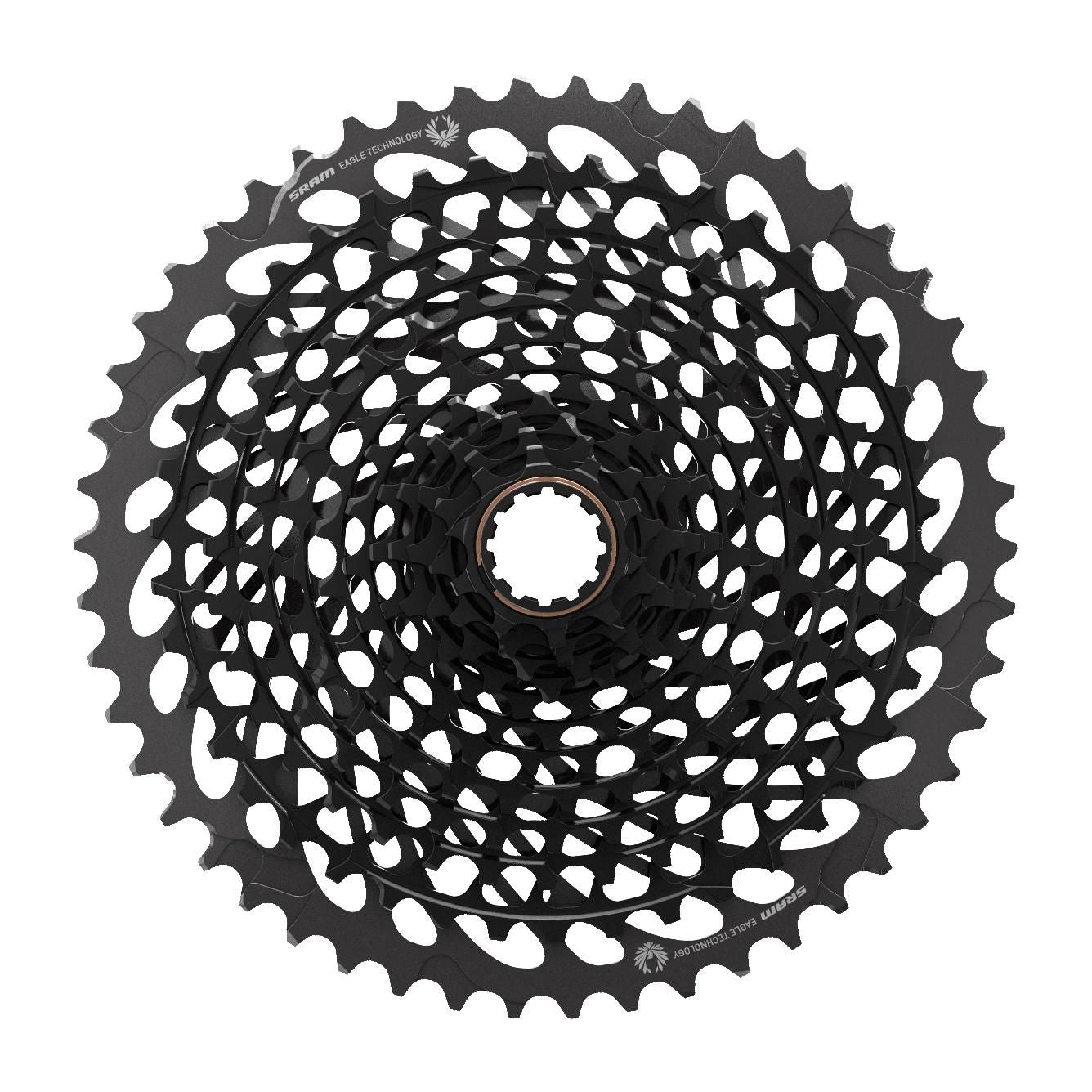 Take a quick look at the new X-DOME™ Eagle™ cassette. The last dangling shred of an argument in favor of a mountain bike front derailleur is now officially dead. Designed for use with our proven, reliable XD™ driver body, this 12-speed, 10- to 50-tooth cassette offers an optimal 500-percent gear range at a considerably lighter weight than 2x systems. It carries with it the X-DOME™ architecture, which, independent tests have concluded, yields the strongest cassettes on the market. New shifting characteristics improve both, inboard and outboard shifting, as well as chain retention. This cassette matches up perfectly in performance and color to X01 Eagle AXS™ enabled componentry.