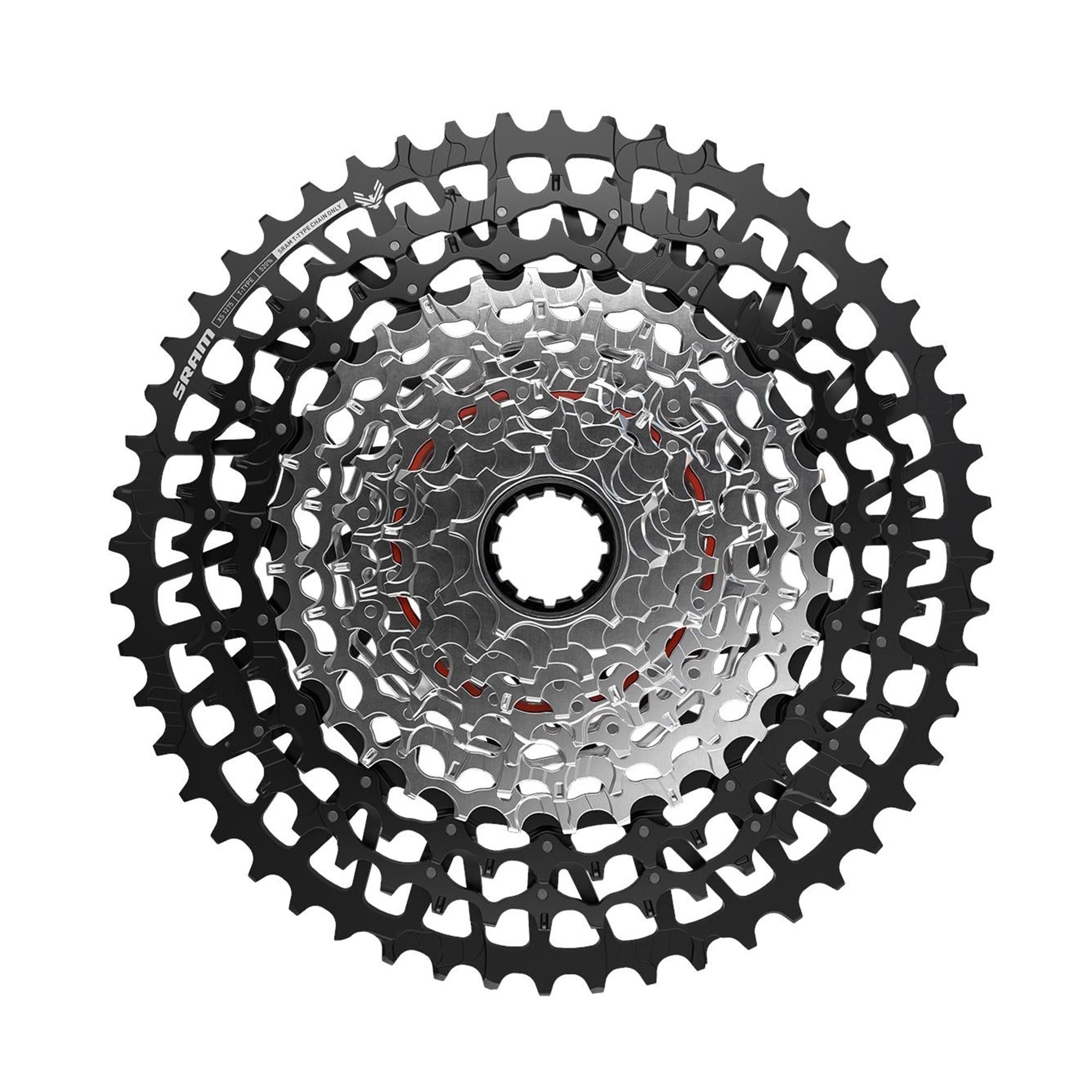 The GX Eagle Transmission (T-Type) Cassette is a key reason why Eagle Transmission offers the best-ever inboard and outboard shifting performance under load. Thanks to its full X-SYNC design, the harder you pedal, the better it shifts. Designed for a 55mm chainline for less extreme chain angles throughout the full range and delivers more precision. It’s 520% range has been optimized with larger 38 and 44-teeth cogs prior to the 52-tooth cog for improved gear steps in the low end (compared to the Eagle drivetrain 10-52-tooth cassette). Featuring a clearly marked Setup Cog, install is both simple and foolproof. Plus, it utilizes a Pindome design for gears 1-8 and a single piece mini-cluster for gears 9-12.