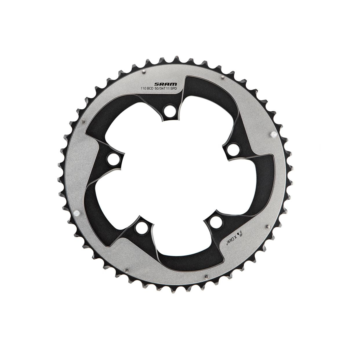SRAM Chain Ring Road X-Glide R 52T Yaw 11 Speed S2 Hidden Bolt/Non-Hidden Bolt 110 Alum 5mm Silver BB30 or GXP (52-36): BLACK 11SPD 52T