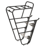 Lowrider mounted panniers provide a more stable ride, but can be a burden when riding rocky or rutted roads and trails. The upper rails on the rack provide an alternate pannier mounting position for these type of conditions.