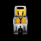 A wrap-around seat body creates a virtual cocoon of protection and features an updated 6-point harness system. An innovative suspension system cushions bumps and jolts and the integrated roll bar provides extra head protection and doubles as a carrying handle. Adjustable footrests and straps keep small feet away from spinning wheels. Child seat complies with stringent European, CPSIA and Proposition 65 safety standards.