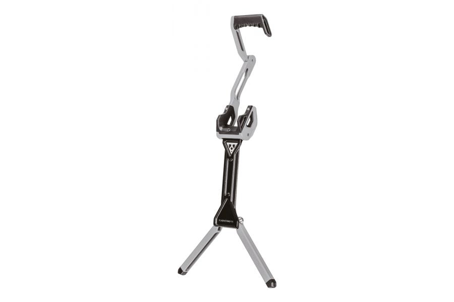 The ultimate portable tune-up stand slips easily under the bottom bracket while the hook holds the down tube securely for display, storage and maintenance.