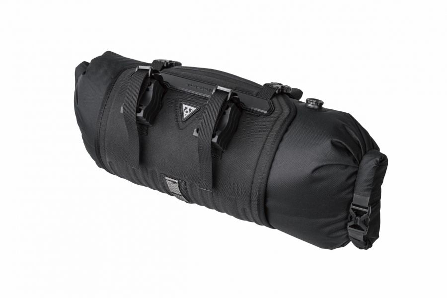 Pack all the gear you need and enjoy the freedom of bikepacking. FrontLoader is perfect for carrying light yet bulky items like sleeping bags, camping gear and spare clothing. Featuring a tough outer support harness and constructed of durable abrasion and water resistant materials, it €™s easily installed or removed with two straps, special spacer mounts and quick release buckles. A backside head tube strap attachment increases load stability. An 8 liter removable waterproof drybag keeps contents completely protected from wet weather and splashes while a built-in air release button purges unwanted air from the bag to effectively compress its contents.