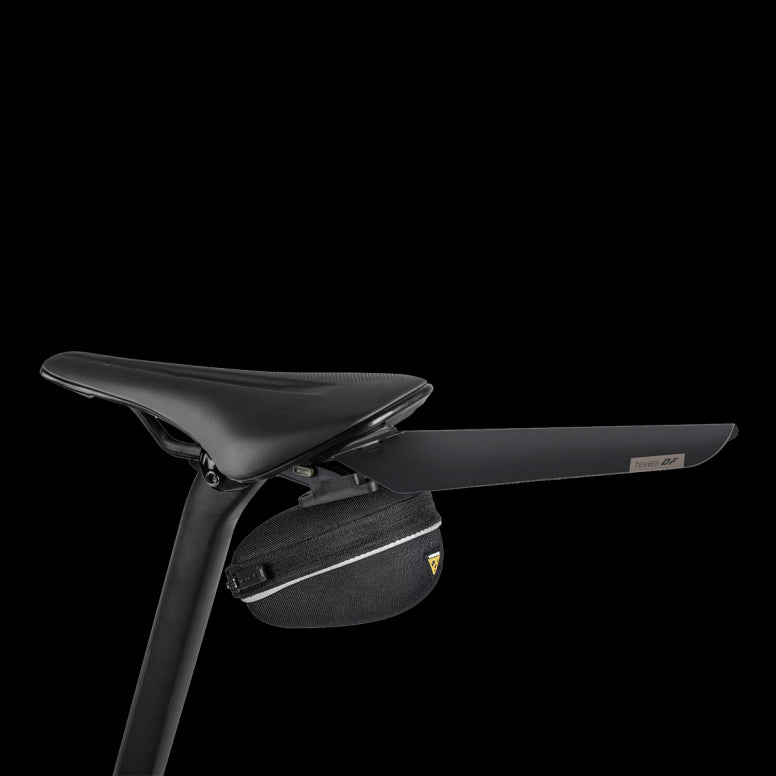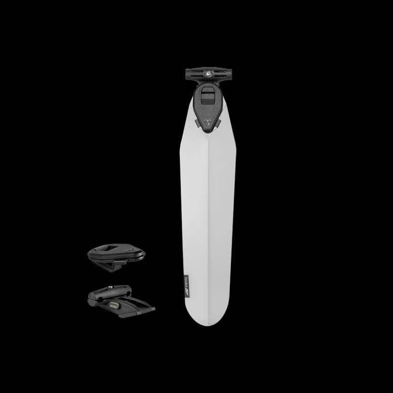 Durable polypropylene fender is ultralight, stylish, and simple to slide and click then ready to go when wet weather arrives. Included Duo Fixer allows fast and easy tool-free mounting and removal and provides dual use with Topeak Duo Fixer system accessories, including Topeak QuickClick saddle bags or most strap type saddle bags, Tubi tools, CO2 inflators, and lights underneath the saddle.