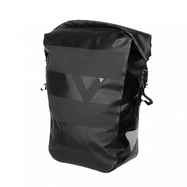 The new Pannier DryBag is constructed from a tough, sonically welded and seamed sealed waterproof material. A watertight roll-top closure provides maximum protection from trail dust, road spray and nasty wet weather. Our new Handle Loc system quickly and securely attaches the pannier to the rack and is quickly removed with a simple upward press & pull of the top mounted carry handle.